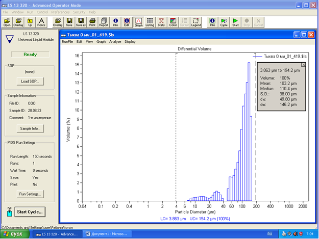 Результаты: После кавитационной обработки продолжительностью 10 минут увеличилось содержание ароматических веществ: низкомолекулярных азотсодержащих соединений - на 24,2%, свободных аминокислот – 41,4%, кетонов – 32%, при дальнейшей обработке содержание ароматических веществ снижается. Распределение частиц в тыквенном пюре характеризовалось тем, что основная масса частиц имела размер 50,2-153,8 мкм, а частицы с размером 7-38 мкм составляли менее 10%. Исследование дисперсности тыквенных полуфабрикатов показало, что частицы размером 153,8 мкм и более разрушаются в ходе кавитационного воздействия